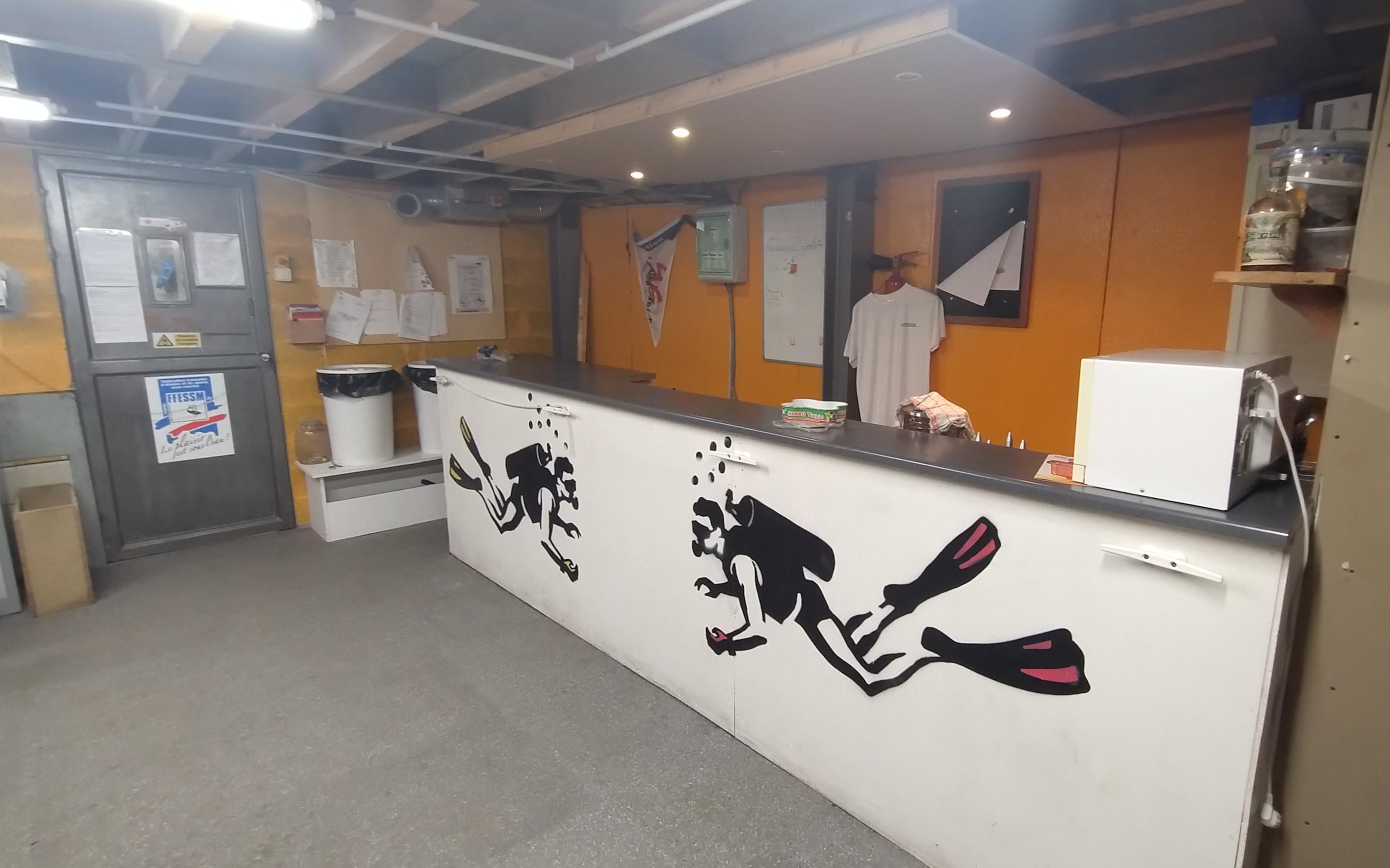 Le club de l'Eponge dispose d'un local associatif, comportant un local technique, une salle de cours, et un coin buvette pour les moments d'échange après la piscine.