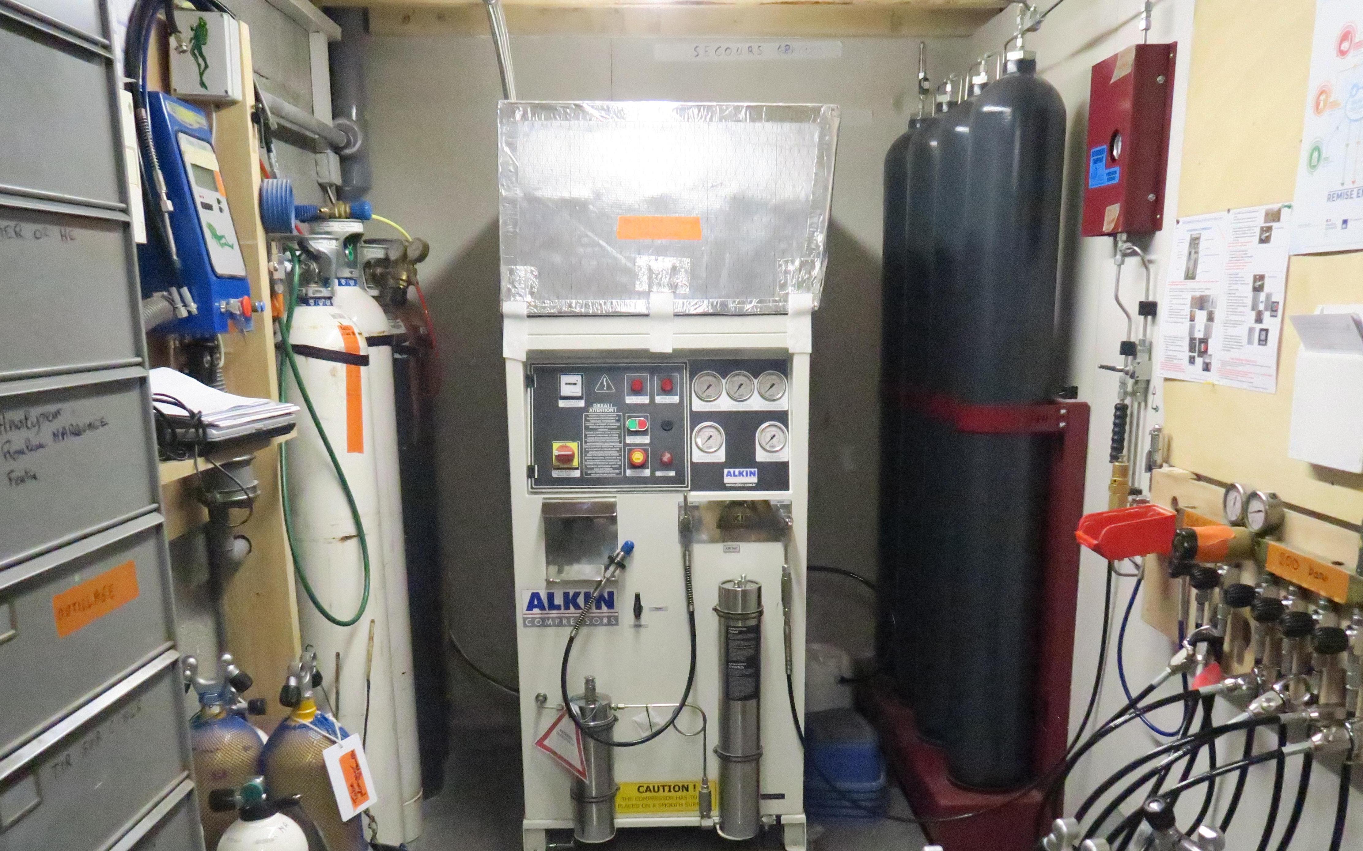 Un compresseur qui permet de proposer aux adhérents le gonflage des bouteilles en air gratuitement, en Nitrox et en TRIMIX à prix coûtant.