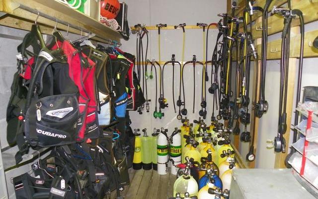 Nous mettons gratuitement à dispositions de nos adhérents des équipements complets : combinaisons, gilets, détendeurs, bouteilles.Nous sommes équipés d'un compresseur permettant le gonflage des bouteilles gratuit à l'air pour nos adhérents, et au Nitrox et Trimix à prix coûtant.