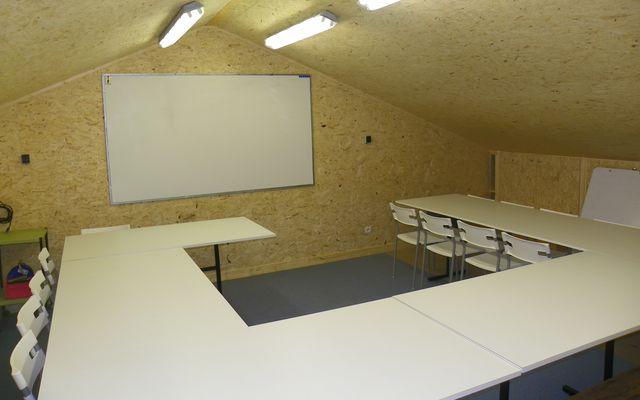 Equipée d'un grand tableau et d'un vidéoprojecteur pour les cours de théorie ou pour partager un repas.